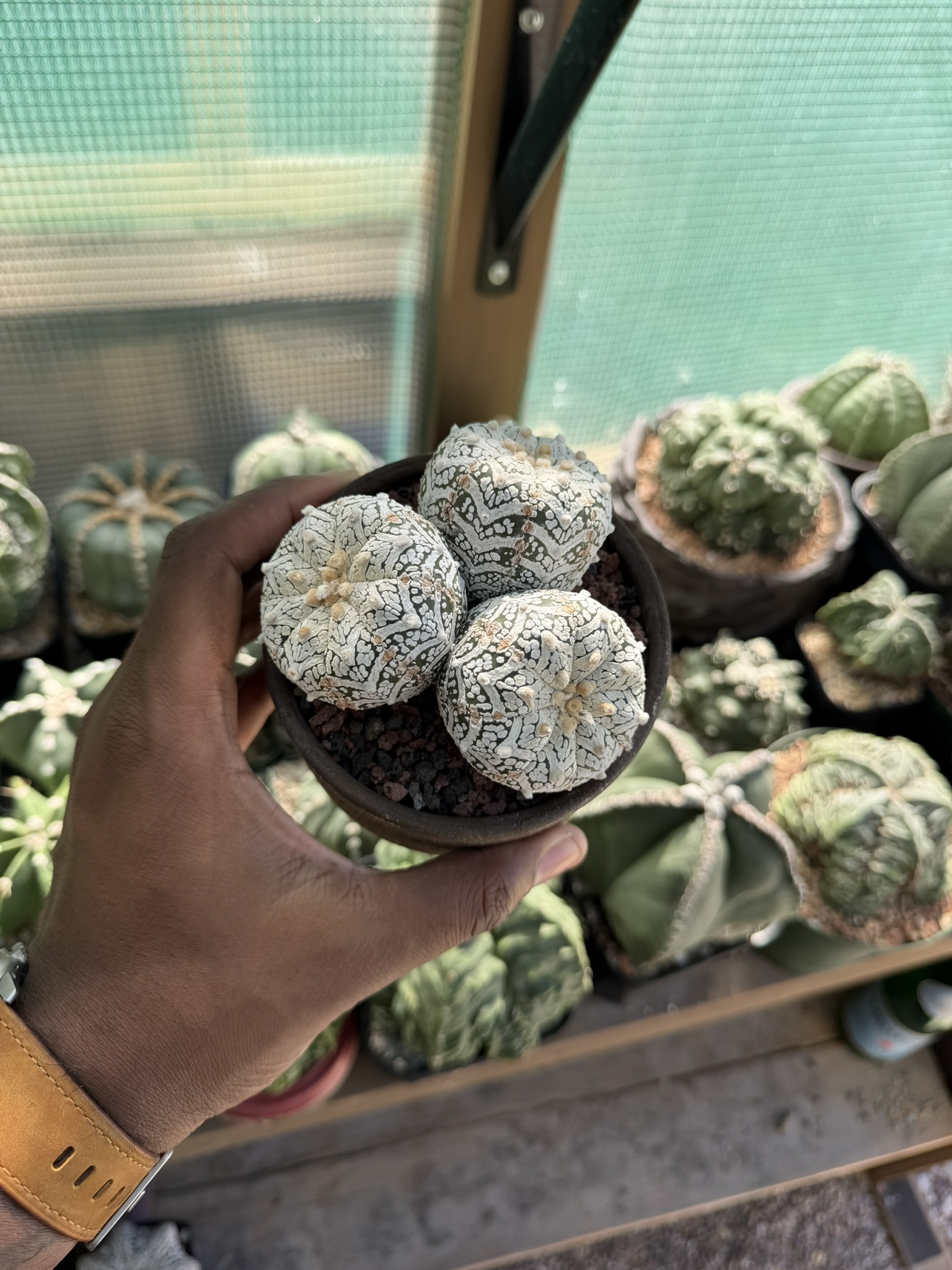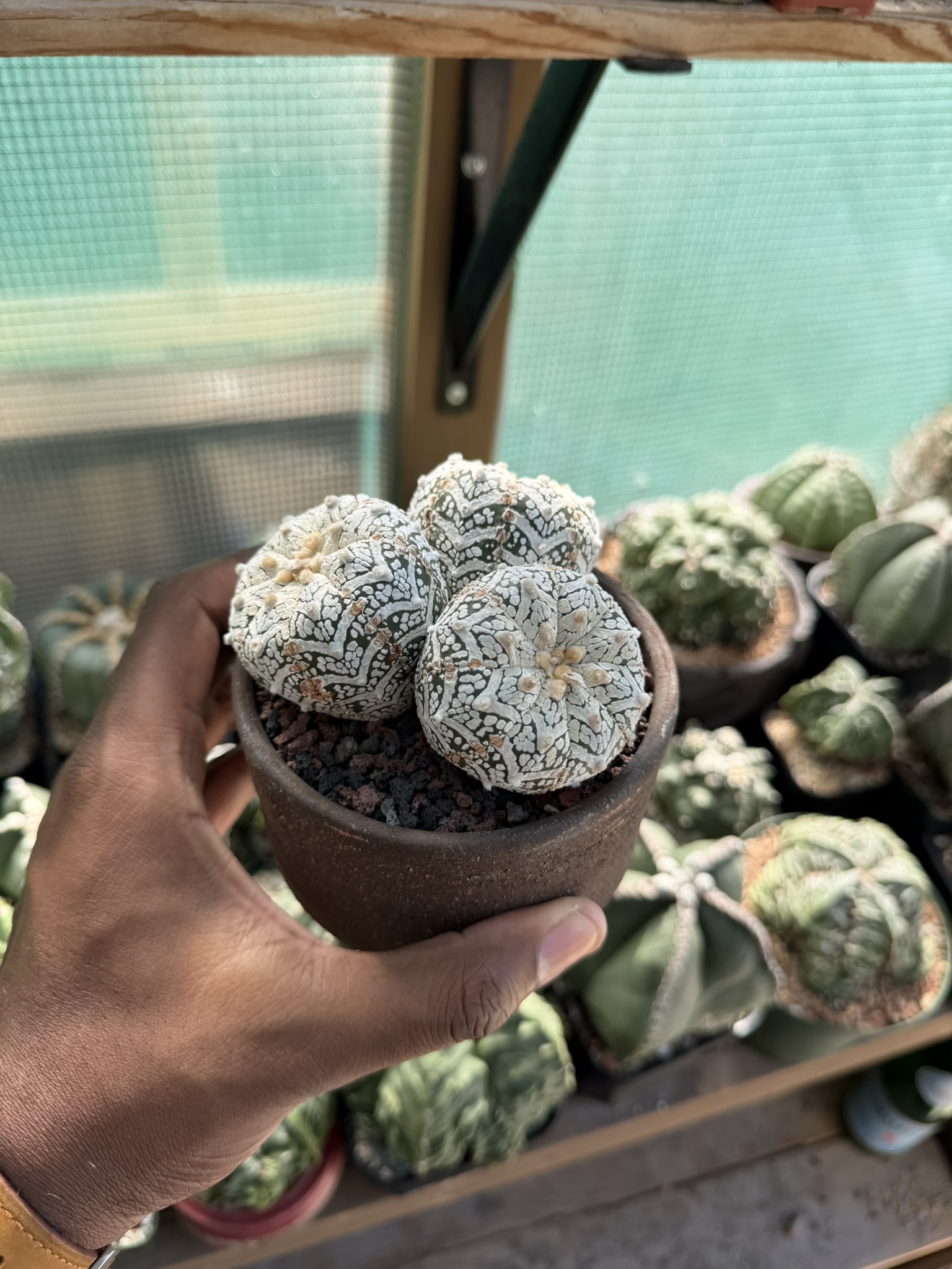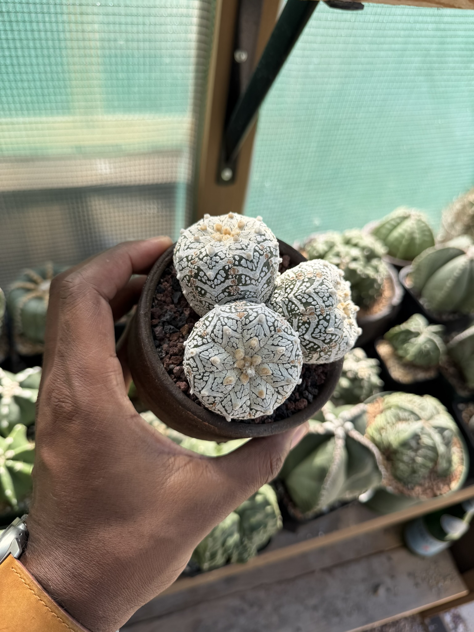 Astrophytum asterias Superkabuto v-Type in a 4 inch pot 3 headed. Beautiful patterns!!!!