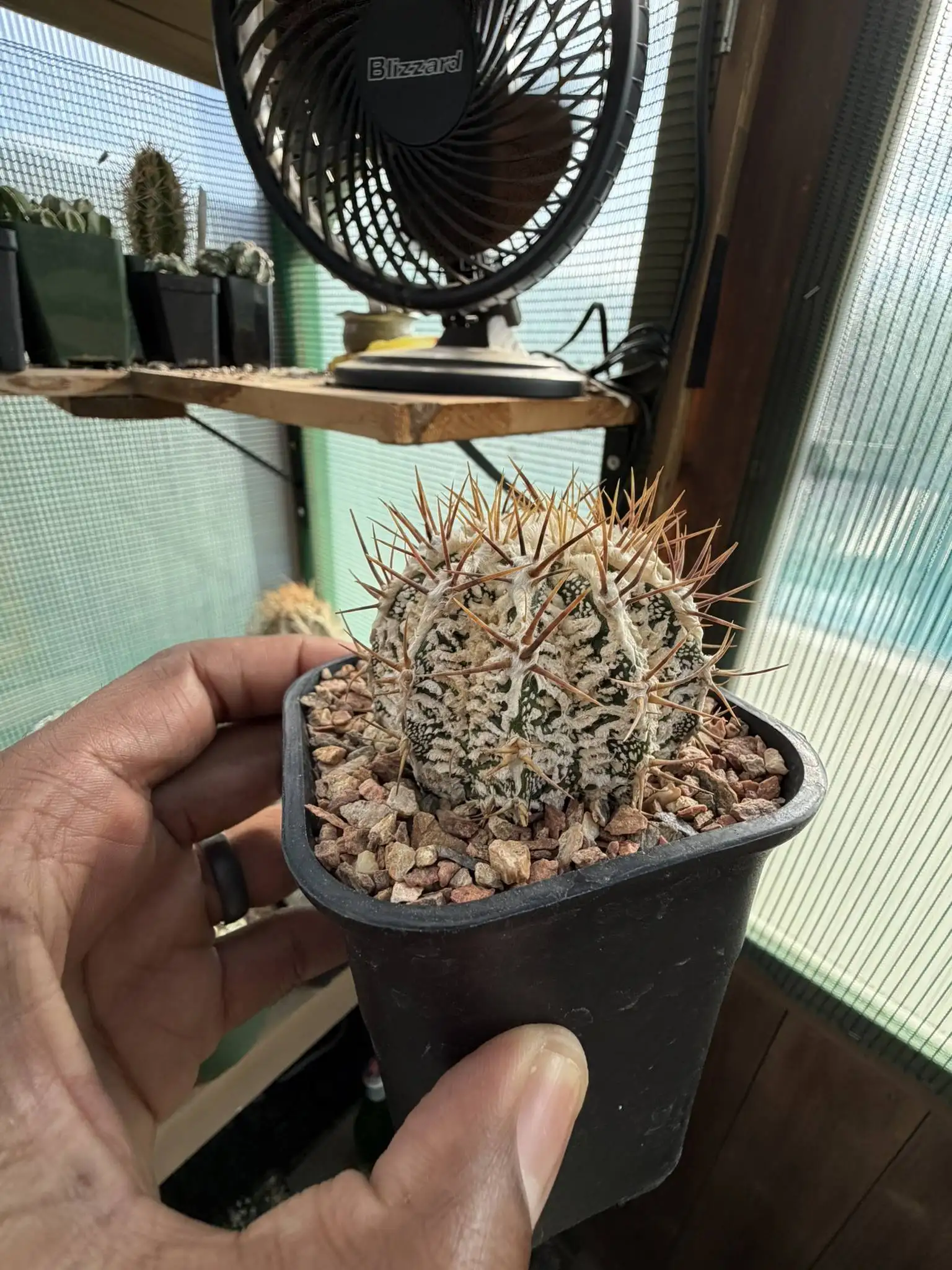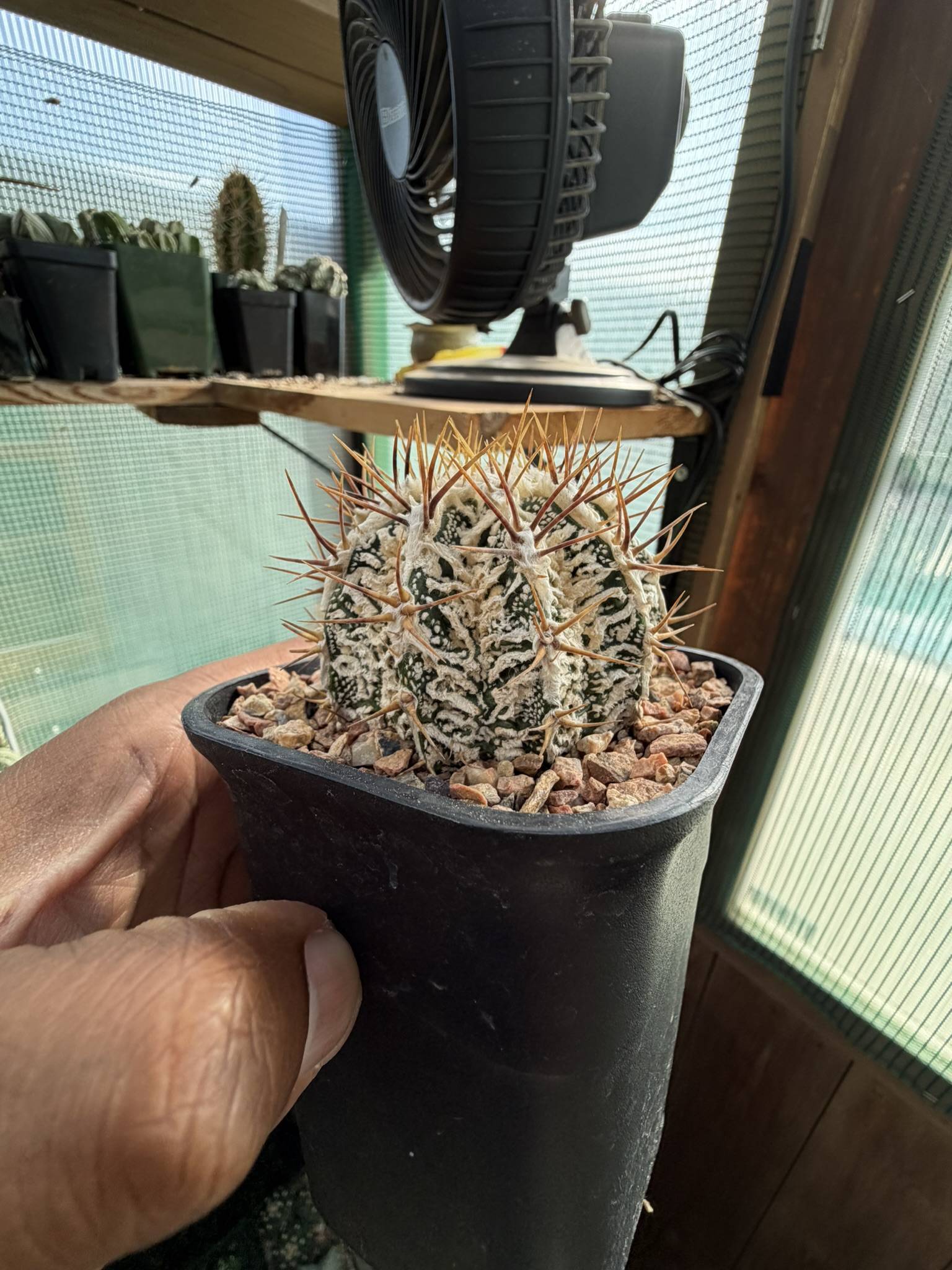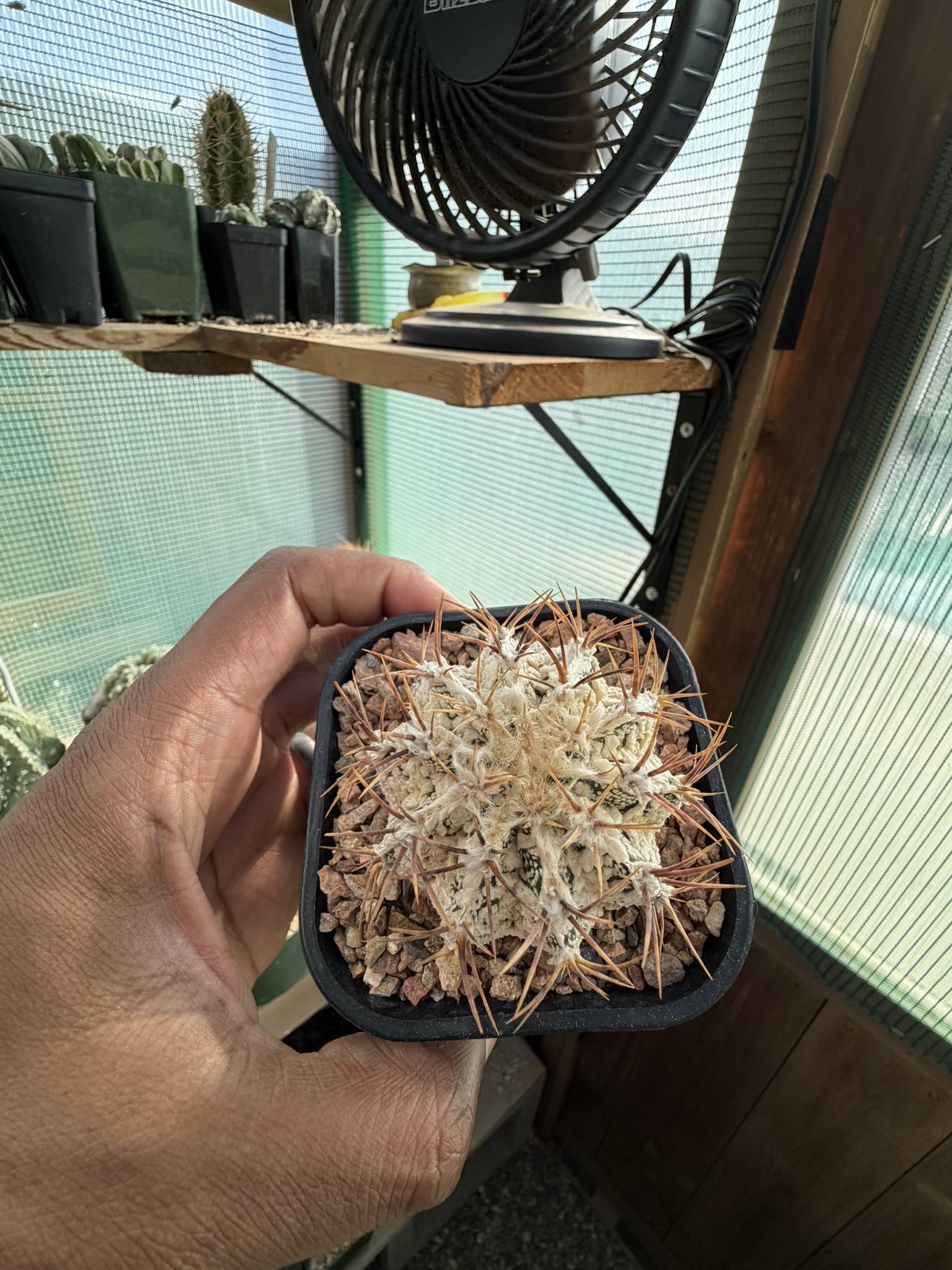 Astrophytum ornatum Fukuryu Hania in a 3 inch pot. A beautiful hard to find cultivar out of Japan with striking features.. first time I’m releasing any of these from my collection!