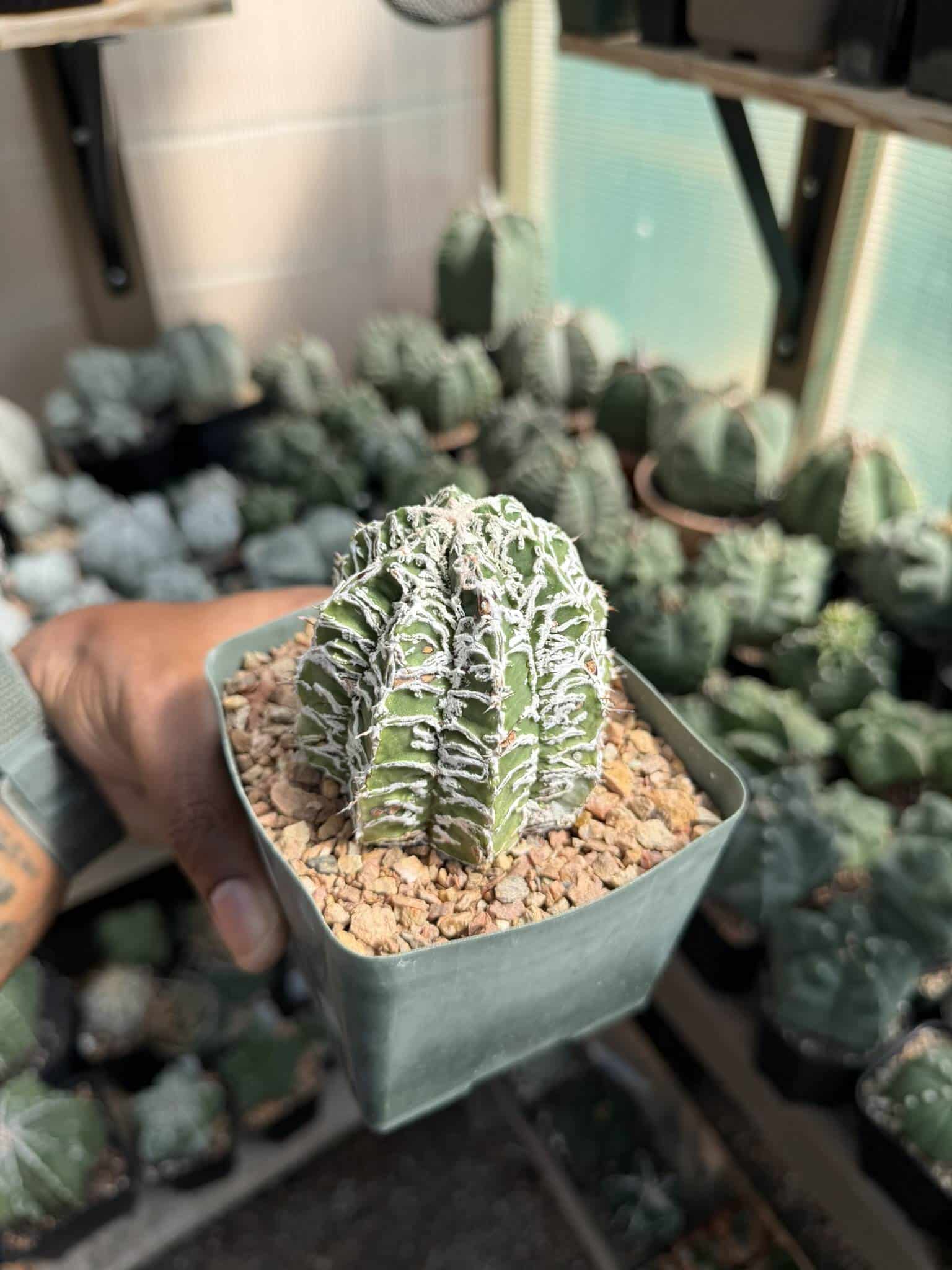 Astrophytum ornatum Fukuryu Hania in a 4.5 inch pot. A beautiful hard to find cultivar out of Japan with striking features.. first time I’m releasing any of these from my collection!