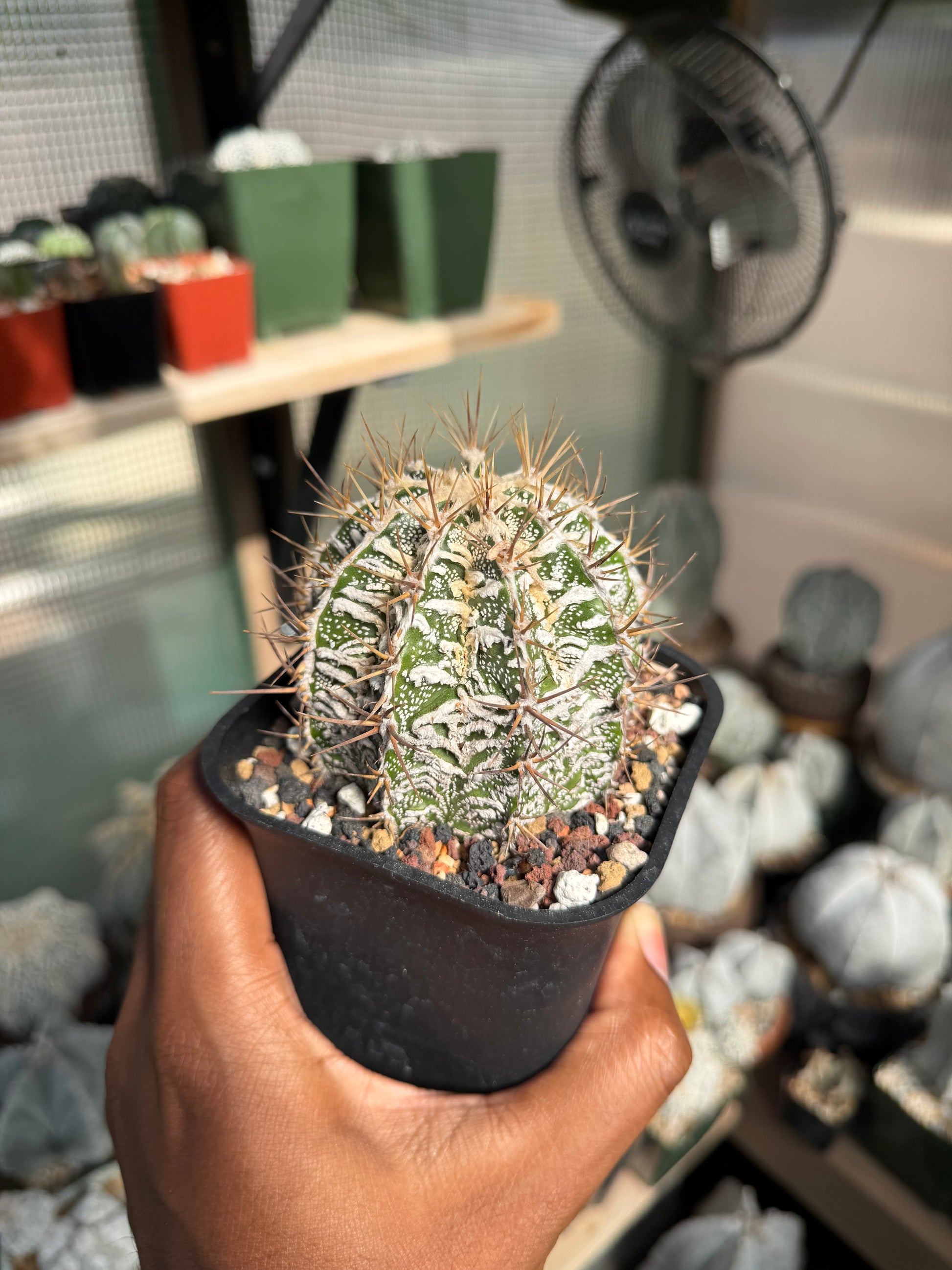 Astrophytum ornatum Fukuryu Hania in a anpprox 4 inch pot. A beautiful hard to find cultivar out of Japan with striking features.. first time I’m releasing any of these from my collection!